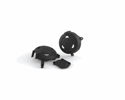 Injection moulded, glass filled nylon with a textured finish and Triumph logo branding. The three piece system protects the lower engine against cosmetic damage in the event of a fall. Includes a clutch cover, alternator cover and crank cover.