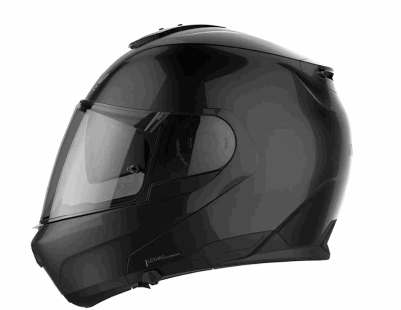 - Hakebeskytterens rotasjons-bevegelse er elyptisk, som gjør det mulig at den totale størrelsen av hjelmen når den står i åpen posisjon, forblir så liten og lav som mulig da den kommer helt inntil hjelmens ytterskall i front. Effekten er vesentlig, når man kjører med hakebeskyttelsen åpen posisjon og man ikke har en «seil-effekt», og fortsatt sikrer god komfort kan nyte følelsen av «halvhjelm».