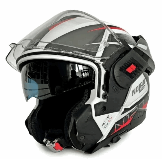 - Dobbel P/J-homologering – som betyr godkjent både som helhjelm i lukket posisjon og halvhjelm i åpen posisjon med bruk av låsesystemet
