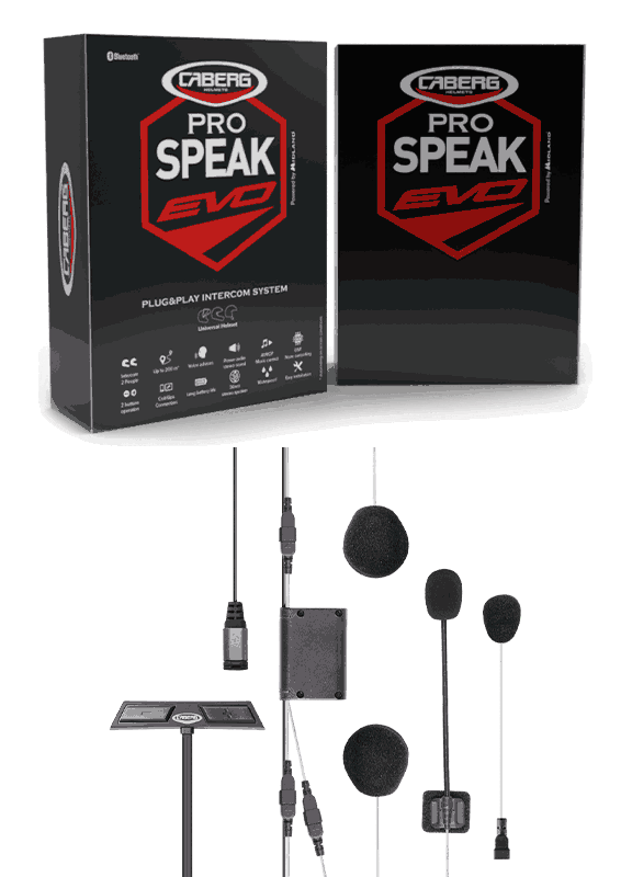 With PRO SPEAK EVO you can listen to/manage music in stereo, make and receive phone calls, talk to the passenger or bike to bike up to 200 mt. with digital quality and DSP system for noise suppression. Compatible with integrated connectivity and control systems adopted by the major motorcycle manufacturers (BMW, KTM, Ducati, etc.). To ensure maximum safety, our helmet models homologated ECE 22.06, have passed also all the requirements set by the EU regulation with the Caberg Pro Speak Evo communication system installed.