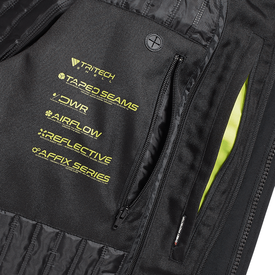 The new Tourer Bright Jacket is constructed from 3L TriTech performance fabric, providing superior waterproofing and breathability. The jacket combines a full set of D3O protectors, removable insulated liner and the option to combine with our Affix series and riding jeans to create a complete and versatile technical suit. This Hi-Viz option has been designed with the commuter in mind, offering greater daytime visibilitThe new Tourer Bright Jacket is constructed from 3L TriTech performance fabric, providing superior waterproofing and breathability. The jacket combines a full set of D3O protectors, removable insulated liner and the option to combine with our Affix series and riding jeans to create a complete and versatile technical suit. This Hi-Viz option has been designed with the commuter in mind, offering greater daytime visibilit