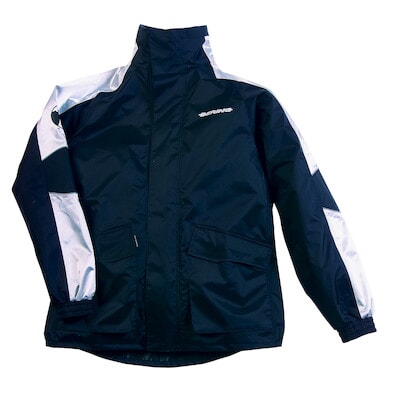 Fôret regnjakke i nylon. Reflekterende materiale.