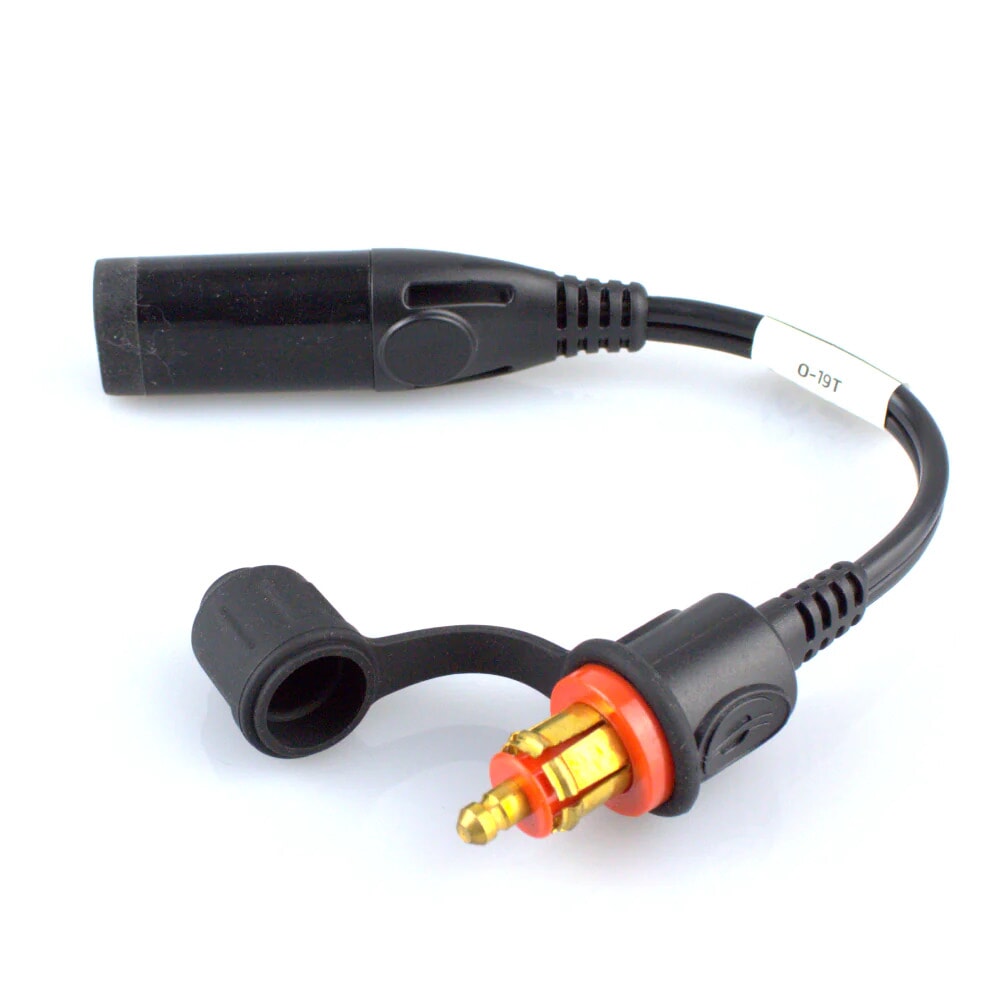 An optimate adapter lead to be used in conjunction with the Triumph Battery Optimiser which converts the battery charger to provide a charge through the external DIN socket.