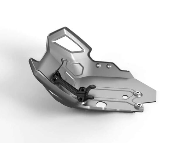 This mass optimised Sump Guard is designed to protect the sump and underside of the bike from the impacts associated with off-road riding thanks to a 4mm underside thickness and 2mm sidewall thickness.