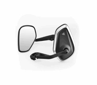 A pair of stylish black anodised bar end mirrors complete with contrast cut machining and laser etched logo.